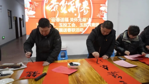 1月26日,,,,,6688体育党委、6688体育工会、6688体育共青团开展“迎春送福,,,,,眷注无限”送春联运动。。集团俞总现场挥毫泼墨,,,,,为员工誊写春联,,,,,提前为他们送上新春祝福。。